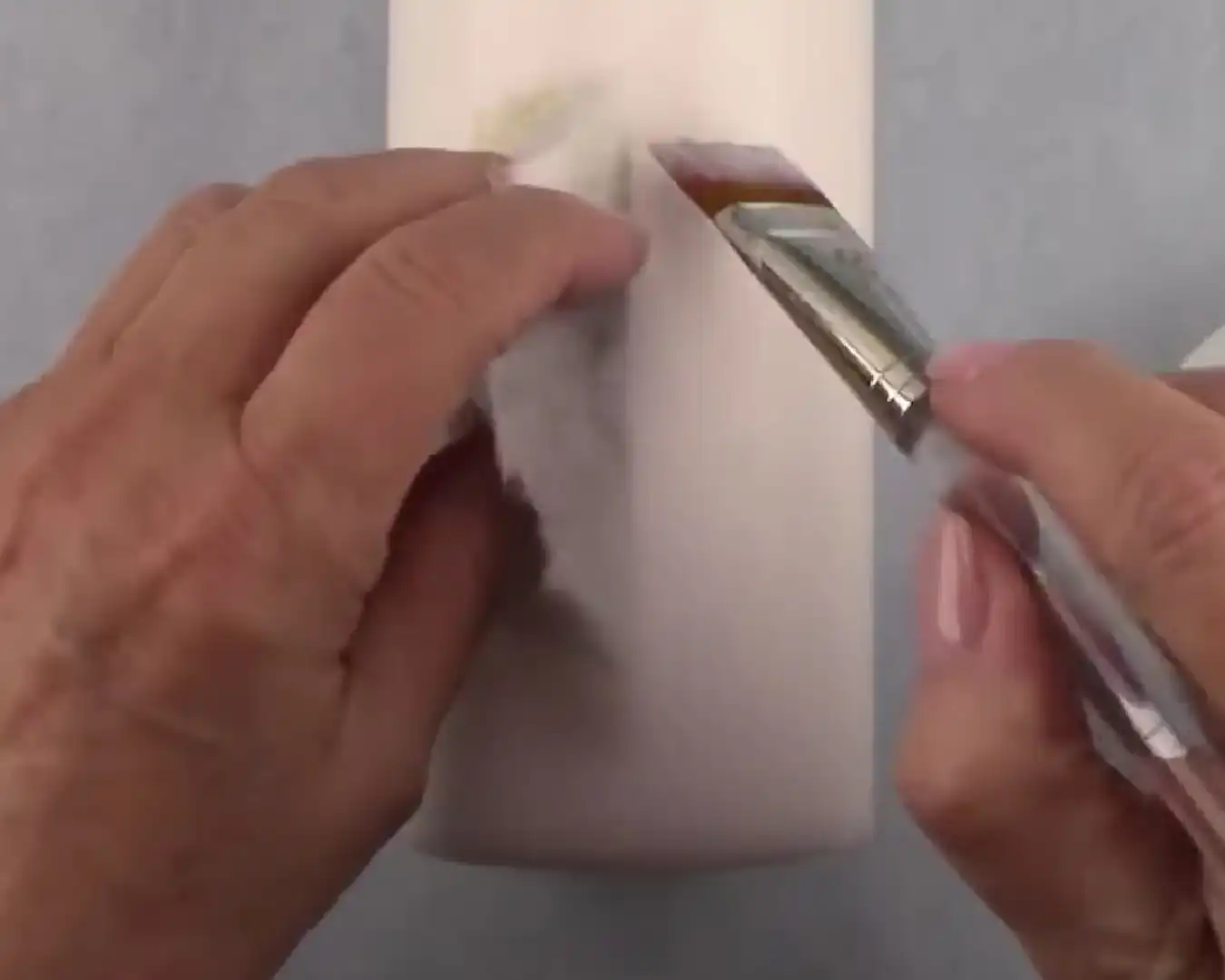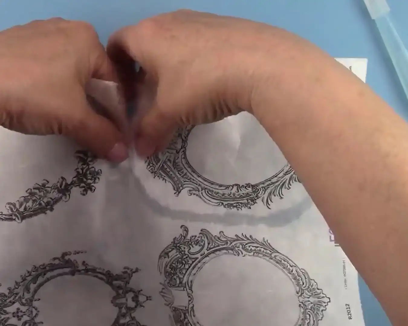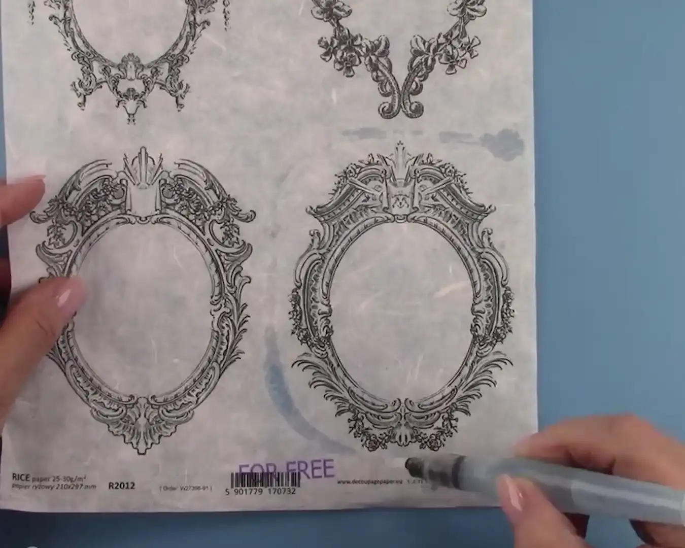 Gebruik een vochtig penseel om met water een rand te maken om het ontwerp dat je los wilt maken.